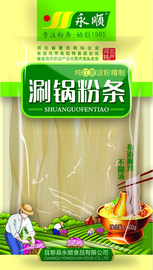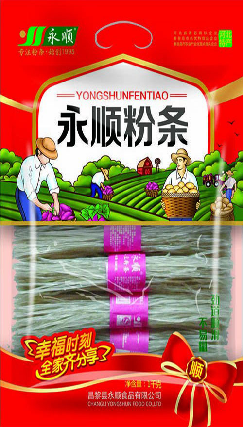 昌黎縣永順食品有限公司坐落于,河北省東北部的秦皇島市昌黎縣;昌黎北枕碣石,東臨渤海,西南挾灤河,全縣總面積1212平方公里,人口56萬,是久負(fù)盛名的花果之鄉(xiāng)、粉條之鄉(xiāng)、魚米之鄉(xiāng)、文化之鄉(xiāng)、旅游之鄉(xiāng)、養(yǎng)貉之鄉(xiāng)、干紅葡萄酒之鄉(xiāng)。昌黎永順食品于1995年建廠,開啟了在粉絲行業(yè)拼搏發(fā)展的新征程。從95年至今,歷經(jīng)多次兼并重組,從當(dāng)初的只有一個(gè)生產(chǎn)作坊發(fā)展到現(xiàn)在擁有永順等四個(gè)粉條生產(chǎn)加工區(qū),12條生產(chǎn)線,本公司生產(chǎn)的粉條特點(diǎn)是:粗細(xì)均勻外觀光潔,色澤純正,晶瑩剔透。